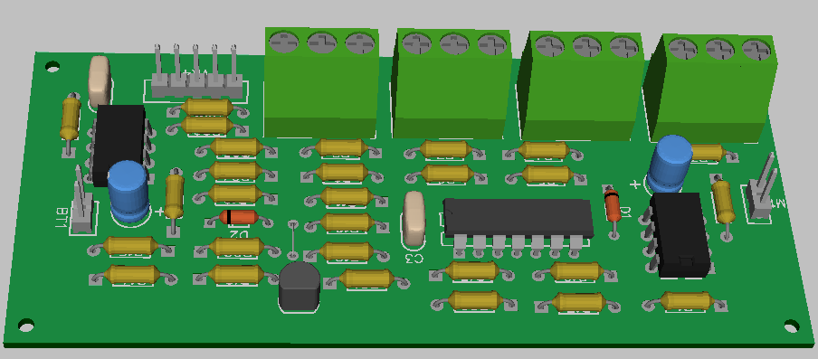 Here's a Diptrace-rendered 3D image of the circuit board - Click for a larger image.
